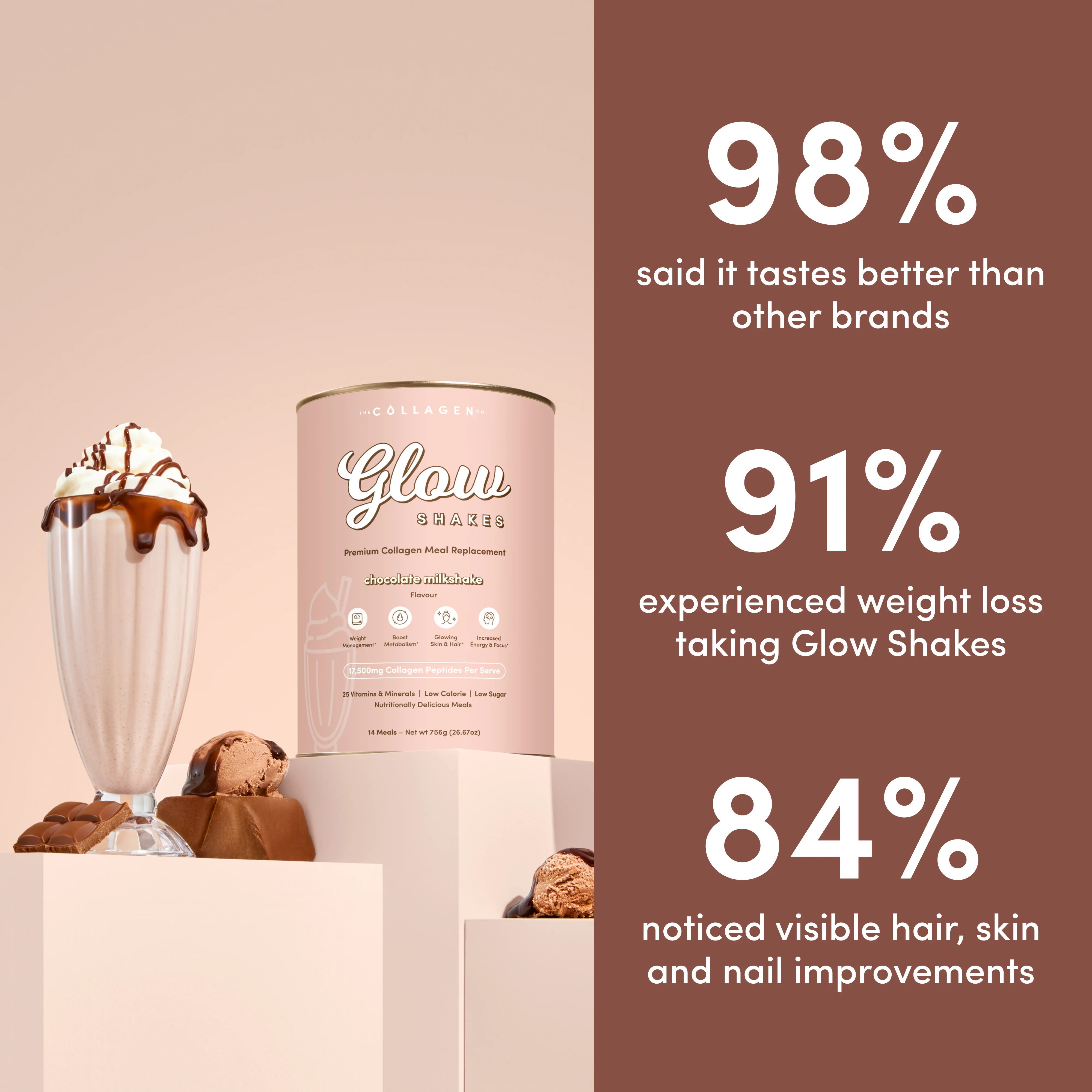 - 29+ grams of hunger-curbing protein (includes 17.5 grams of glow-giving Hydrolysed Collagen Peptides!)